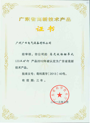 ??? 由广东省科学手艺厅组织的“2012年高新手艺产品”评审认定事情已于克日完成,,,,,,我公司下属企业广州w66利来电气装备有限公司研爆发产的“高光效格栅罩式LED工矿灯”和“电梯轿厢LED照明驱动电源”乐成入选。。。