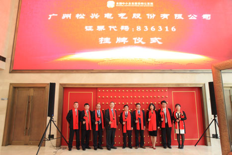 ? ? ? ? 4月19日,,,,,,,公司控股子公司广州松兴电气股份有限公司 “新三板”挂牌仪式,,,,,,,在天下中小企业股份转让系统有限公司盛大举行。。。。。广州市国资委、w66利来股份向导,,,,,,,松兴电气董监高职员和主理券商代表加入了仪式。。。。。此前,,,,,,,在3月30日,,,,,,,松兴电气(证券代码:836316)已经在股转系统正式挂牌。。。。。